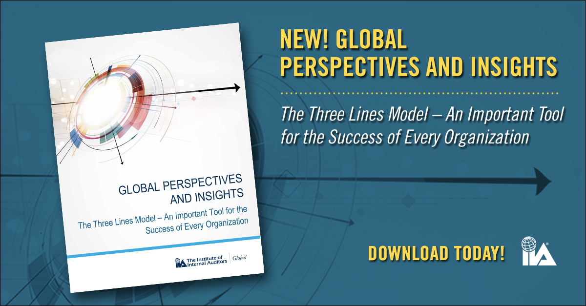 Developed in response to a high demand for timely thought leadership that is powerful, timely, relevant, topical, and responsive to global geopolitical and economic influences, The IIA created Global Perspectives and Insights. This new thought-leadership series, offers insight and direction on key issues, with perspectives that resonate globally. Its content will come from a variety of sources, including: IIA Global, Affiliates, Associated Organizations, and advocacy partners, such as IFAC and INTOSAI.